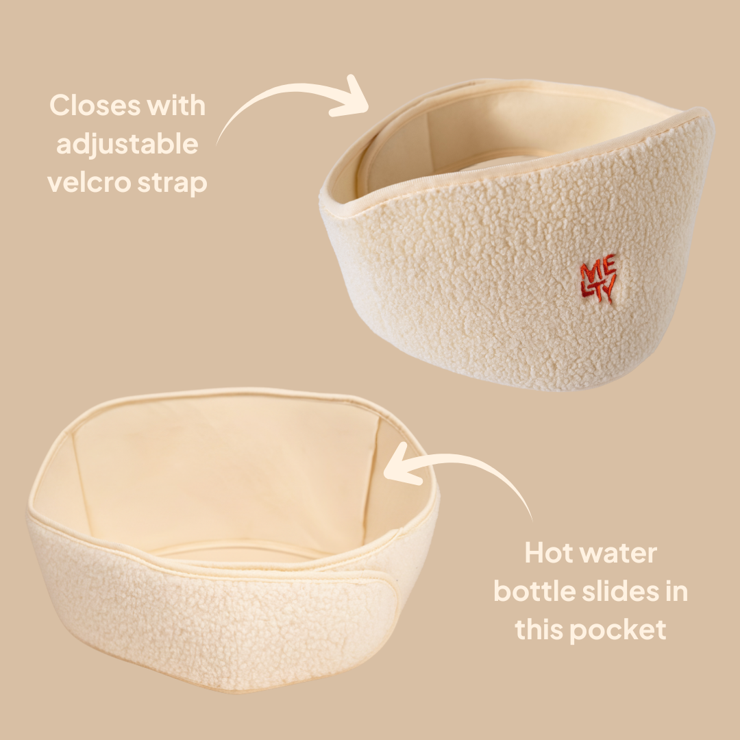 Simply fill it with warm water, slide it in, and wrap Melty around your waist β it stays perfectly in place against your belly.